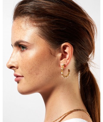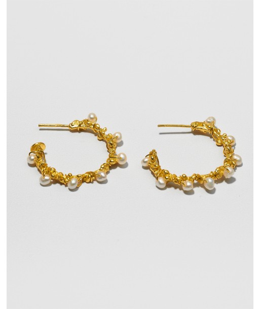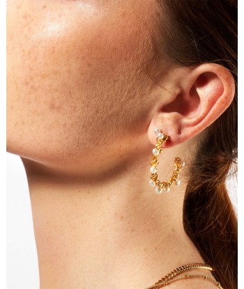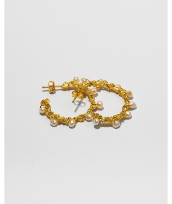 Essential Collection, Organic Beads With White Pearls Hoop Earring