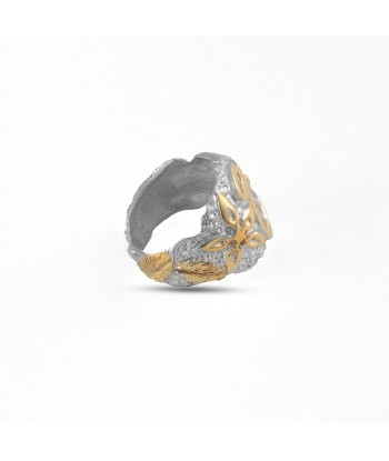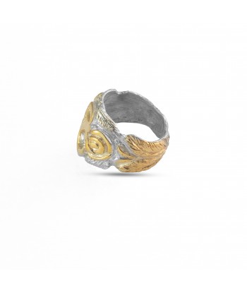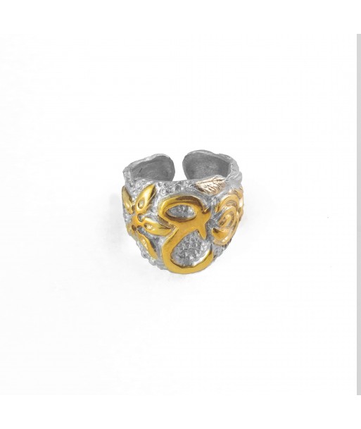 خاتم شغل يدوي ، حفر يدوي ، فضة استرليني عيار ٩٢٥ ، مطلي ذهب و بلاتين