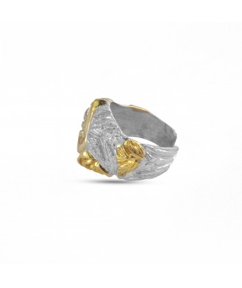 خاتم شغل يدوي ، حفر يدوي ، فضة استرليني عيار ٩٢٥ ، مطلي ذهب و بلاتين