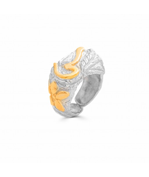 Calligraphy Collection, Arabic Initials , Letter S (Seen س) , Handmade , Hand Engraved Letter With Flowers & Leaves Adjustable Ring