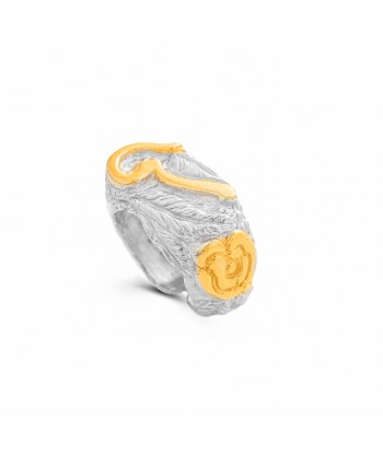 خاتم شغل يدوي ، حفر يدوي ، فضة استرليني عيار ٩٢٥ ، مطلي ذهب و بلاتين