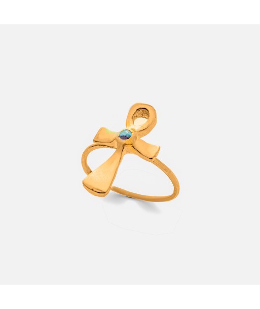 Pharaonic Collection, Engraved Ankh Gold Plated Ring With Turquoise Bead Stone