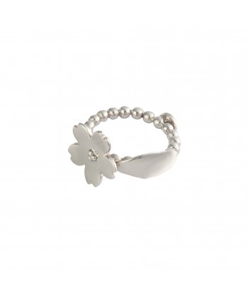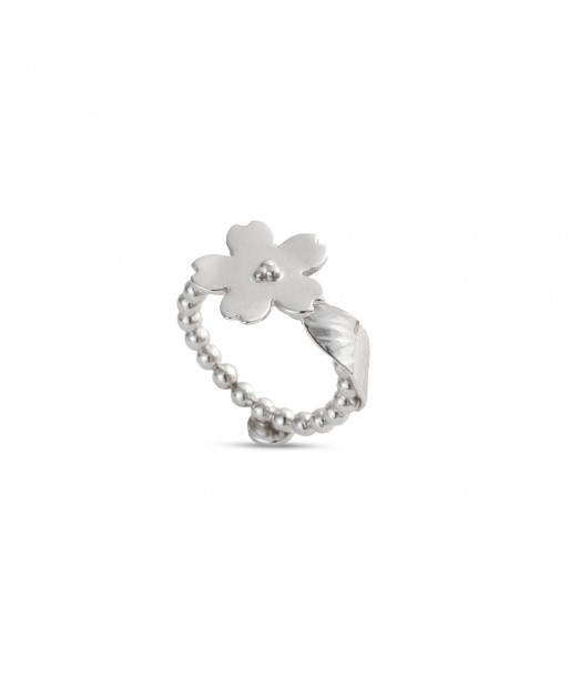 Flowery Collection- Silver Ball Ring With Silver Flower & Leaf  ,Platinum Plated