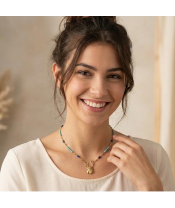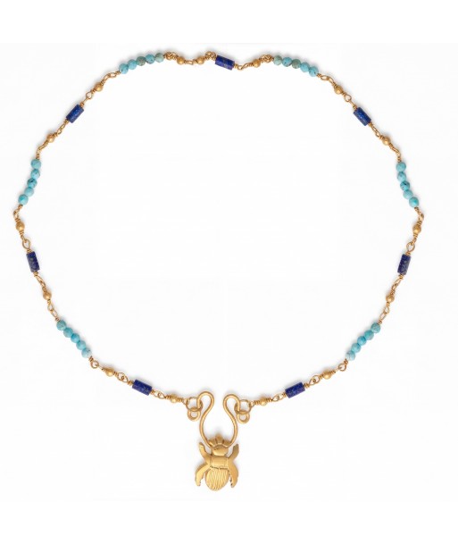 Pharaonic Collection, Med Scarab With Turquoise & Lapis Stone Wire Necklace