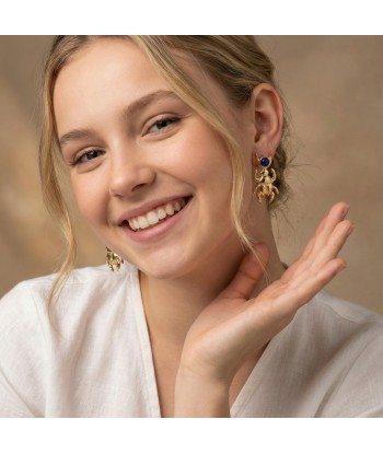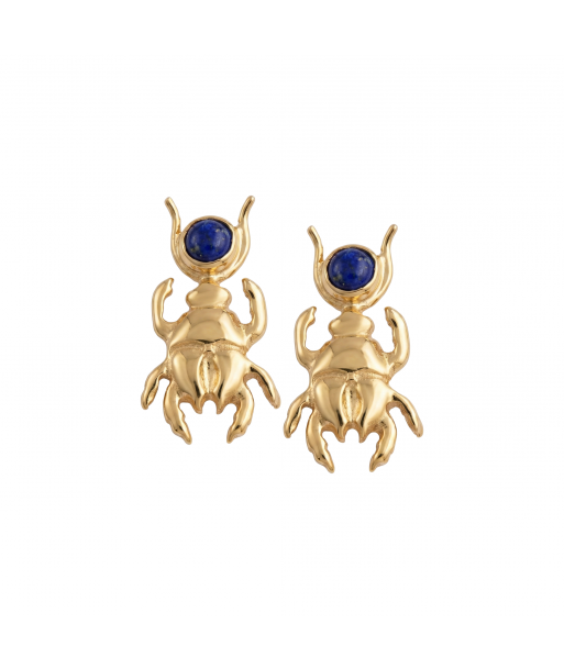 Pharaonic Collection, Big Scarab With Round Lapis Stones Earrings